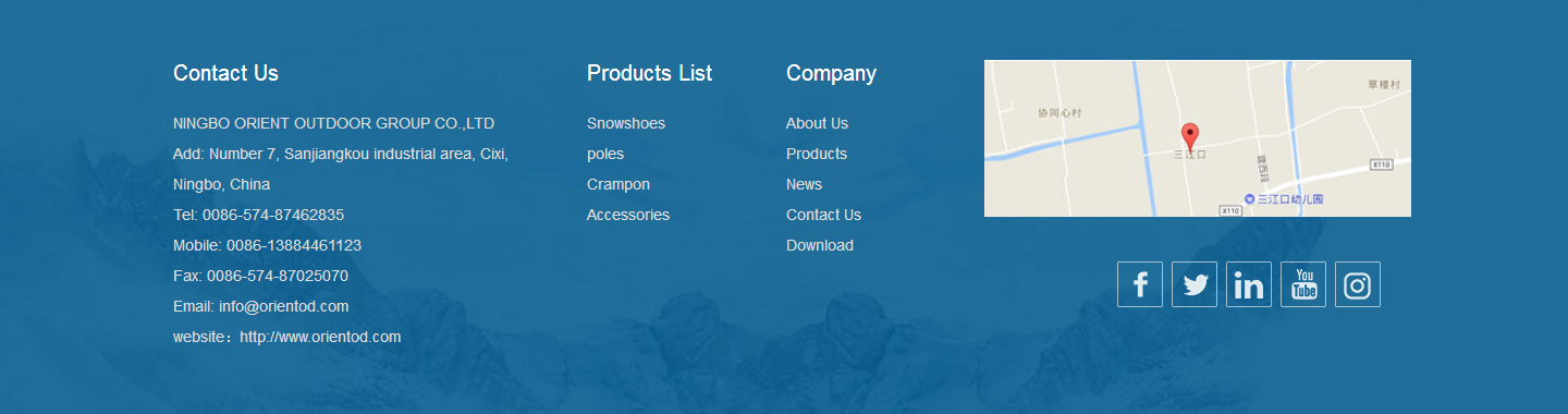 作品简介:慈溪市东方摩擦制品有限公司是一家专业生产户外用品,登山杖,雪地靴,户外防风服等系列产品出口型企业